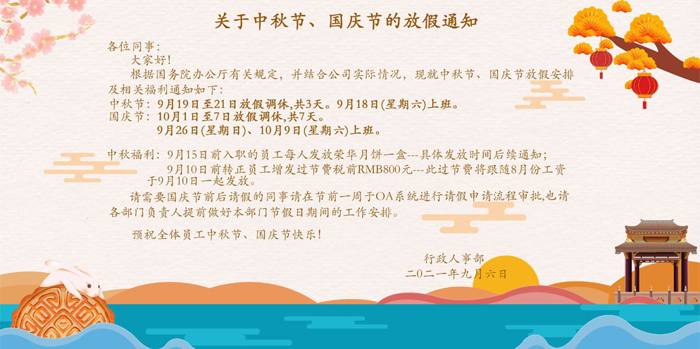| 關(guān)于2021中秋節(jié)、國慶節(jié)的放假通知 |