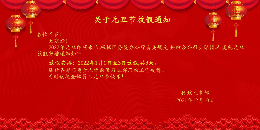 | 上一篇: 關于2023年五一勞動節放假通知 下一篇: 關于2021中秋節、國慶節的放假通知 |