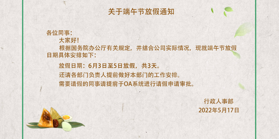 關于2022年端午節放假通知