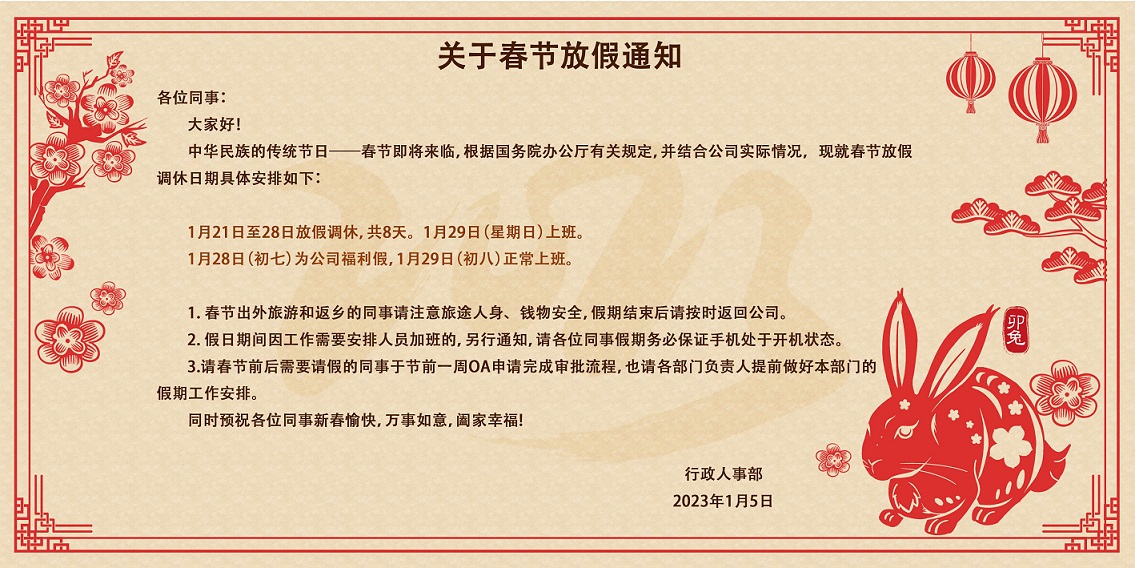 | 關(guān)于2023年度春節(jié)放假通知 |