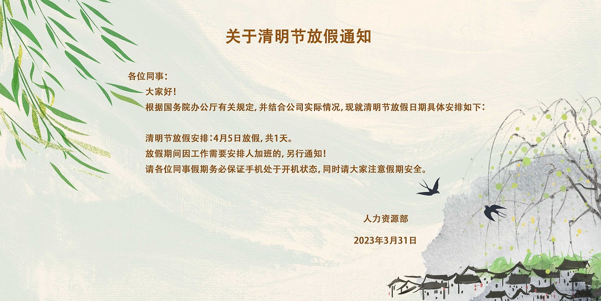 | 關(guān)于2023年度清明節(jié)放假通知 |