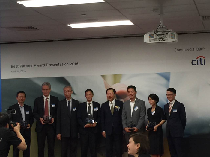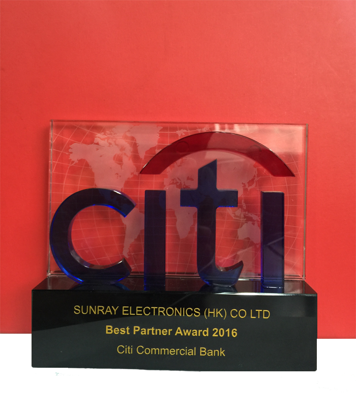 | 2016年4月14日,新蕾電子(香港)有限公司獲得花旗銀行2016年度最佳合作伙伴獎。 |